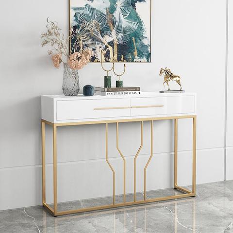 락 패널 디자인의 현대 골드 콘솔 테이블 거실 및 출입구 장식용 견고한 금속 프레임 소파 테이블